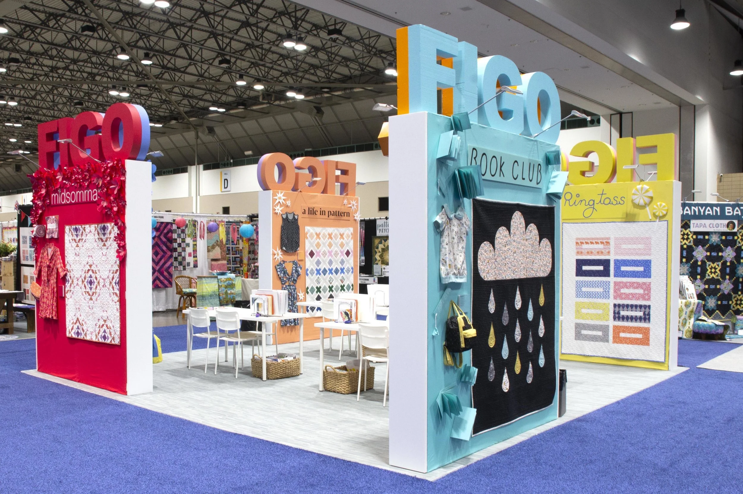 This booth was created for FIGO Fabrics’ Spring 2019 release for the Spring Quilt Market annual trade show. Each wall displays one of the eight collections in FIGO’s Spring line. The walls showcase at least one garment, a project and one quilt which utilizes the fabrics within the collection.