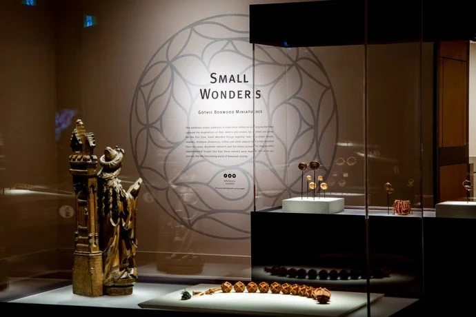 The below images are from one of the bigger projects that I contributed to. I was a part of the Small Wonders exhibition team where I worked with graphic designer Marilyn Bouma-Pyper to create illustrations of the miniature boxwood carvings. I was supplied with high-resolution photos of these miniature carvings and I traced the elements that the information panels highlighted. You can see how small the carvings are within the prayer beads featured in the images below. I created all the illustrations in the exhibition. This exhibition received an award from the Registered Graphic Designers Association in November 2017.